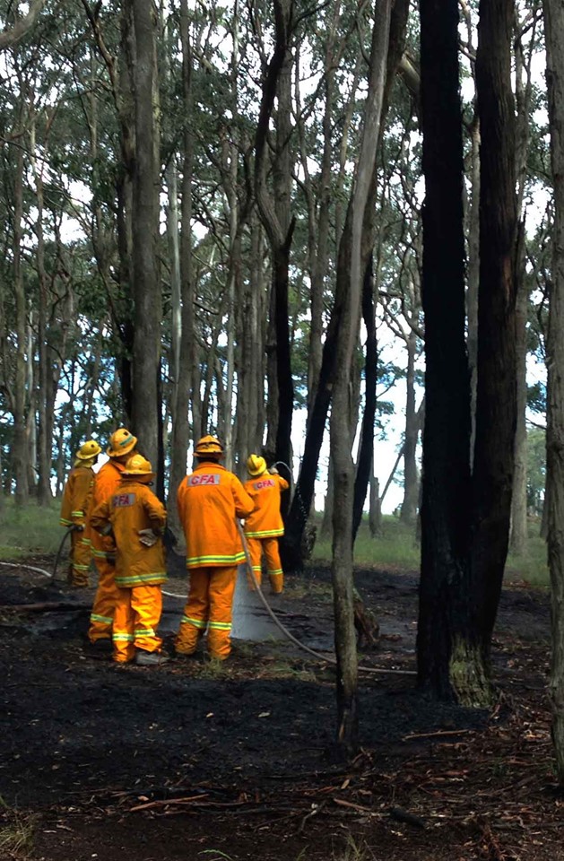 This morning Woodend CFA was called to yet another burnoff that had spread and started climbing into nearby trees. Whilst the owner was doing the right thing in clearing their property before the fire season, they pretty much broke all of the rules for conducting a safer burnoff. Make sure you have cleared around your fire area, keep it well away from trees and scrub, make sure you have a means to extinguish the fire and never leave the fire unattended. Also take extra special care on windy days. Fortunately Woodend T1 crew arrived in time to stop the fire spreading further and making the scene safe.