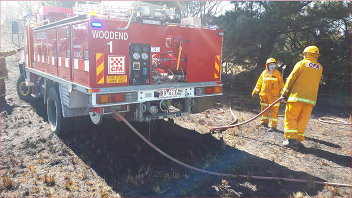 Yesterday Woodend was called to a burnoff out-of-control in Lancefield. We were one of around 10 tankers plus support vehicles, called to the fire that was spreading rapidly. Fortunately, first crews on scene were able to quickly bring it under control as joining crews were able to help with blacking out. Lucky it wasn’t very windy. A sign of really how dry things are, even at the start of spring, and the long fire season we have ahead of us. Well done to the crew on trusty old Woodend Tanker 1, one of its last jobs before moving on to ‘browner’ pastures.