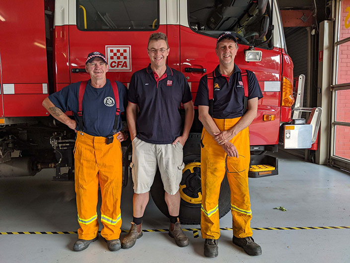 Woodend CFA member Brad Dean is on his was to Mallacoota as part of Strike Team 0204. Brad is in the centre of the photo flanked by two vols from Hesket-Kerrie CFA. Strike Team Leader Laurie Lovell is to his right and Andy Sayers to his left. Brad becomes the 17th Woodend member to volunteer for strike team work since our first deployment to NSW in early November, and also marks the 26th deployment for Woodend volunteers. More Woodend volunteers are due to be deployed to Mallacoota in the coming weeks. A fantastic contribution and one that we will eagerly continue.