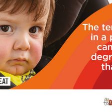 The temperature in a parked car can be 20 – 30 degrees hotter than outside