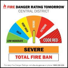 Tomorrow, Friday the 25th of January, is forecast to be a Severe Fire Danger Rating with a TOTAL FIRE BAN.