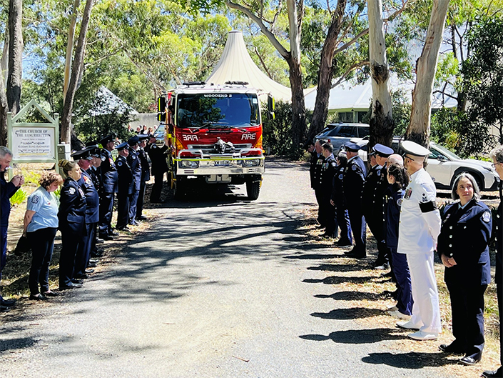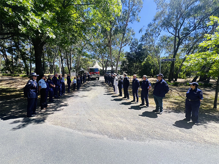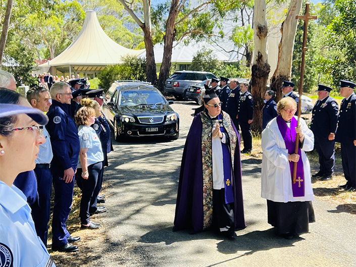 The Funeral of much-loved Woodend CFA Veteran and Comms Officer Keith Mason was held this morning at the Church of the Resurrection in Macedon. A large crowd of family and friends were part of a beautiful ceremony which culminated in a CFA Guard of Honour involving more than 40 CFA volunteers. Thank you John Keating for your lovely words and photos.