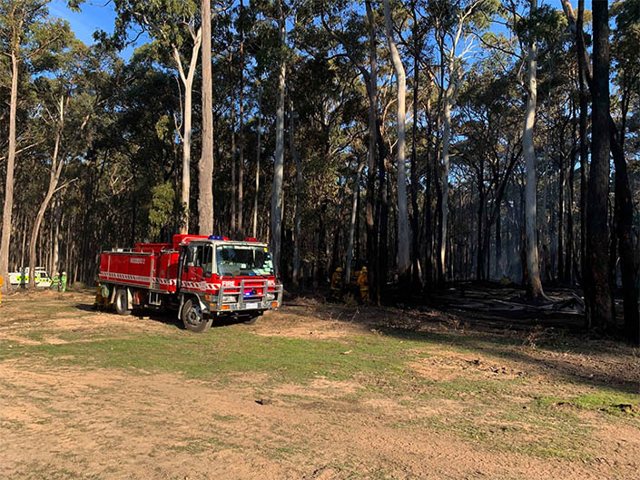The fire had started by burn-off which had spread into nearby bush by the strong winds, and quickly took hold. The initial response was joined by CFA volunteers from Woodend, Carlsruhe, Malmsbury, Bullengarook, Spring Hill and Musk, and additional trucks from Tylden and Trentham, as well as several vehicles from DELWP including a dozer to build an earth break around the fire, which had spread to around 5 acres. It too around 4 hours to bring the fire under control and black-out.