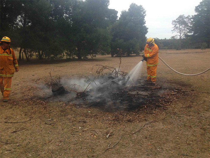 This afternoon we were called to an illegal burnoff during the Fire Danger Period. What made matters worse was that when extinguishing the fire we discovered a range of materials that had been burnt including a mattress, number plates and potentially cement sheeting contains asbestos. Our members spent longer going through the decontamination process than actually putting out the fire. All the more dangerous with Dangerous Total Fire Ban this Saturday’s, where strong winds could possibly re-ignite the burn. A $20 trip to the Transfer Station or simple phone call to see if you are allowed to burn off, is a lot cheaper than a possible $500 fine. PLEASE NOTE: The Fire Danger Period restrictions are still in place, and burning off is forbidden, with Police to be called under Zero Tolerance.