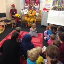 Once upon a time Firefighter Mike and Firefighter Sue drove their big red fire truck to the Woodend Library for Saturday Storytime. Firefighter Sue read the children a story…