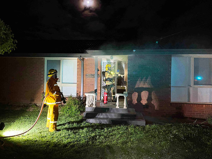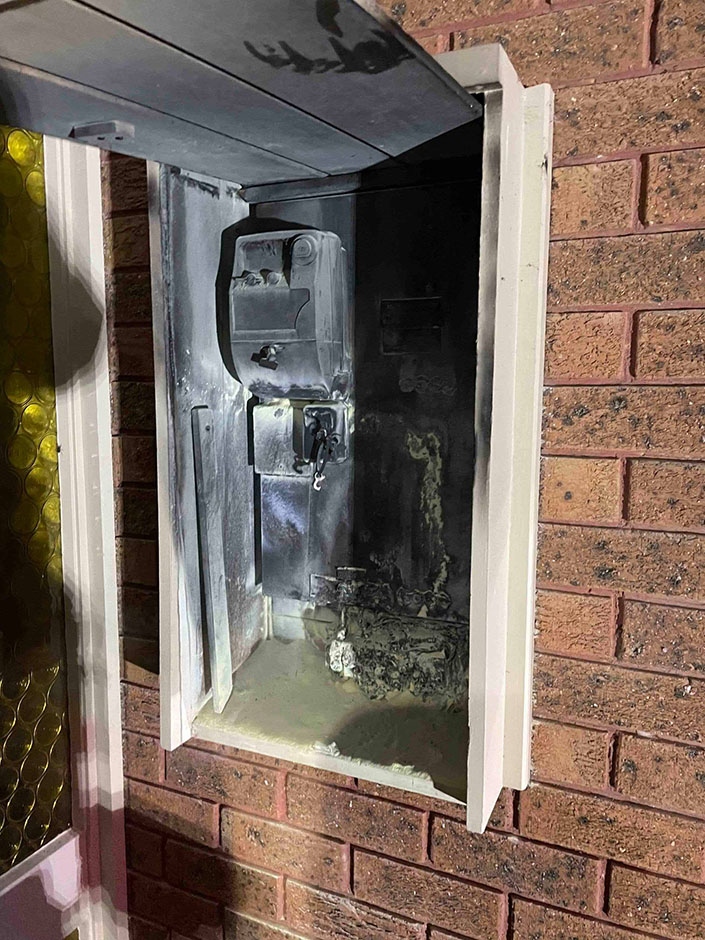 Just after 2am this morning Woodend CFA was called to a fuse box fire in North Woodend, along with units from Macedon, Carlsruhe and Tylden. Woodend Pumper was first on scene and a fire fighter wearing BA (Breathing Apparatus) quickly extinguished the fully involved meter box using a fire extinguisher. If left a few more minutes it could have easily spread into the roof space. Woodend FCV arrived with a brigade member who is also an electrician, who was able to ensure the house was safe, along with Powercor who disconnected power from the property. Fire fighters then continued with safety procedures in checking the roof space to see if the fire had spread there, and also used the Woodend TIC (Thermal Imaging Camera) to look for any hot spots. Crews departed once the property was declared safe.