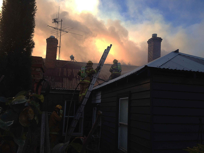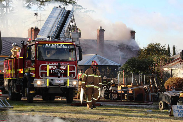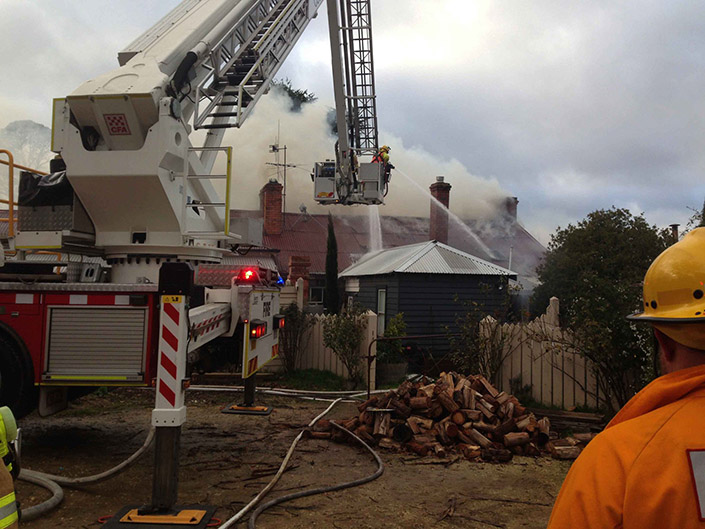 This morning just before 7am Woodend Pumper was called to a structure fire in Kyneton. We joined appliances from Kyneton, Malmsbury, Tylden, Carlruhe, Springhill and Langley-Barfold, as well as the Ladder Platform and PE Support from Bendigo. Nearly 90% of the beautiful 160 year old home was involved in a fire fight that lasted over 7 hours. Well done to all the local volunteers who gave up most of their day.