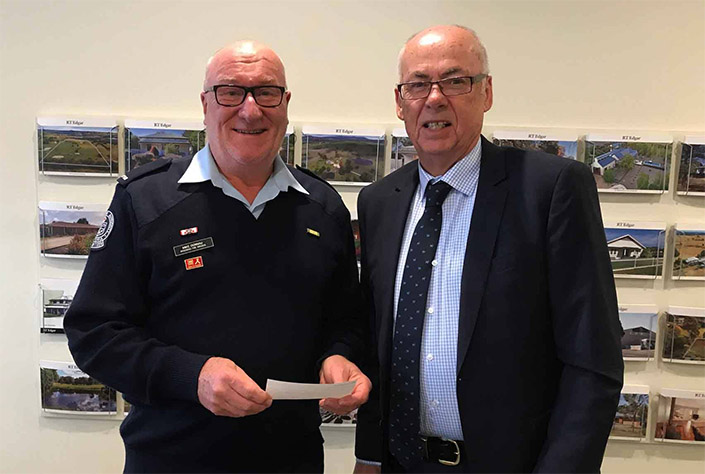 This morning the Woodend Fire Brigade was presented with a very generous donation of $650 in appreciation for the efforts of our team in a fire fight last year. Woodend Captain Mike Dornau accepted the cheque from RT Edgar Director Rick Lander (pictured). The donation was organised by Mr Lander with Associate Director Beverley Higgs and the team at RT Edgar Woodend, in association with realestate.com.au