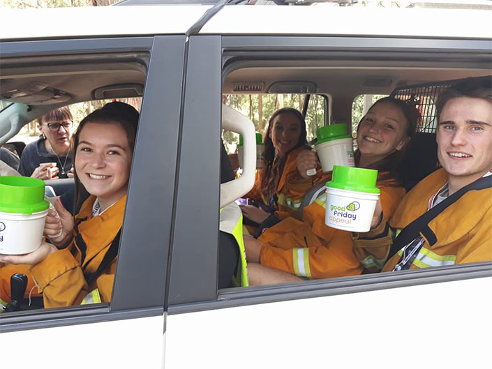 The McKinnon family have been stalwarts of the Woodend CFA Good Friday appeal since they were kids. yesterday the McKinnon clan, including family and friends, included at least 18 collectors. Together that raised an amazing $4,530 which was more than a third of the total Woodend Collection. What a great team effort. To top it all off, they then trooped down to watch their beloved Kangas win over the Saints. A perfect end to a very rewarding day.