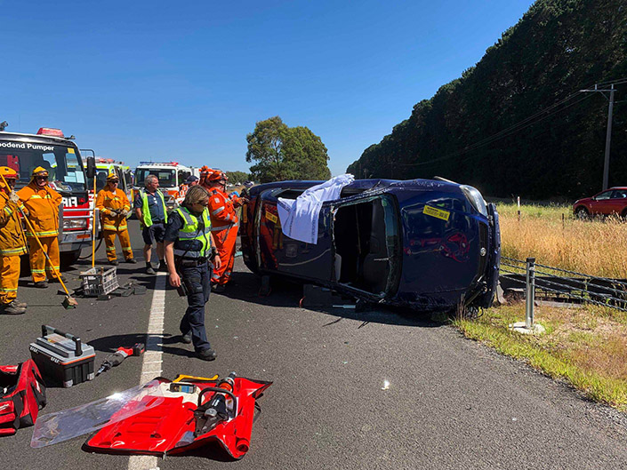 This morning Woodend and Carlsruhe CFA were called to an MVA on the Calder Freeway North Woodend, with a possible person trapped. On arrival a male had managed to get out of the car, while a female was still trapped inside. The SES were called to remove the windscreen to allow access to get her out. Fortunately, both people were checked by paramedics and taken to hospital as a precaution. Woodend CFA remained on scene until the vehicle and freeway were cleared and declared safe. Please drive safely on our roads this year!