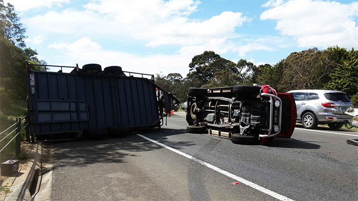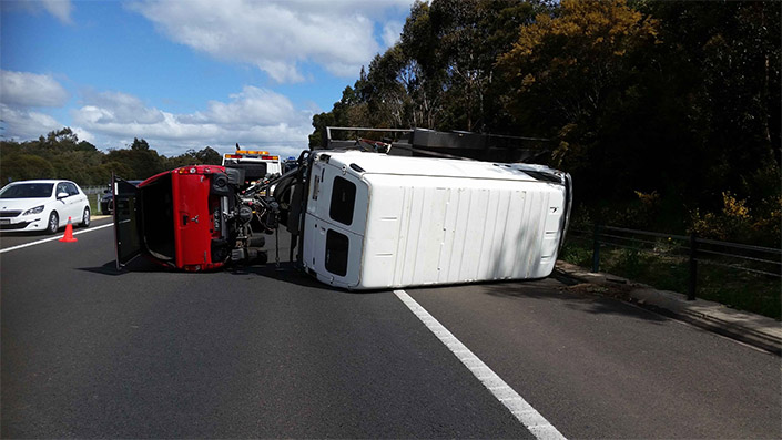 On Saturday afternoon Woodend CFA was called to an MVA on the Calder Freeway, with a possible person trapped. On arrival we discovered a car towing a large van on a trailer had lost control and tipped over. Woodend was joined by CFA vehicles from Newham and Hesket, as well as Woodend SES. Fortunately nobody was injured apart from the driver’s pride! A timely reminder to be very careful when towing, especially something quite large.